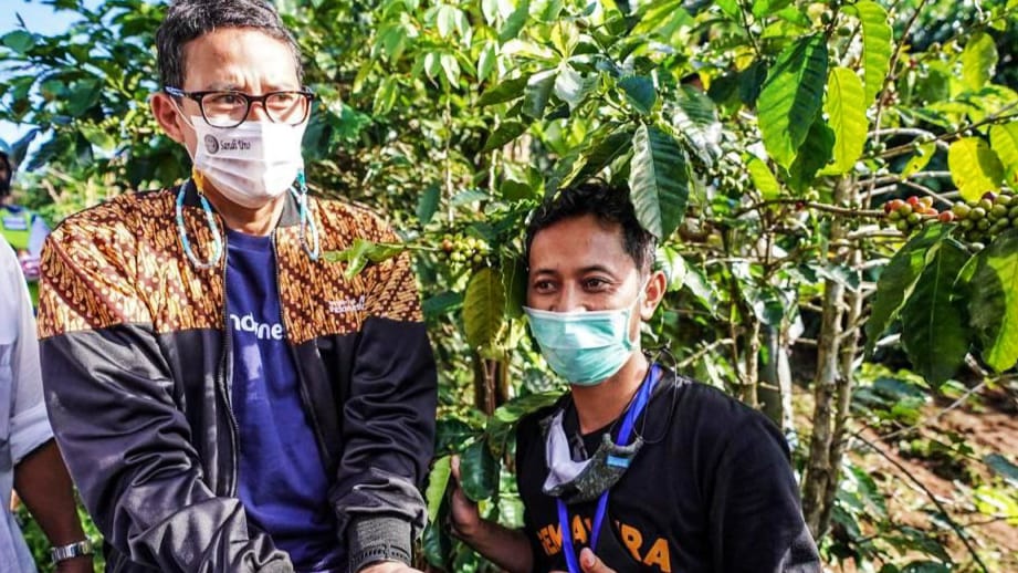 Menparekraf Sandiaga Uno saat berkunjung ke eduwisata di Dusun Pengkol, Desa Ngawonggo, Kaliangkrik, Jawa Tengah, Sabtu (3/4/2021) menjelaskan, eduwisata kopi mulai dari petik hingga merasakan kopi secara langsung jadi atraksi menarik bagi wisatawan yang berkunjung ke Kaliangkrik yang terkenal dengan pesona alam di bawah kaki Gunung Sumbing atau Nepal Van Java.