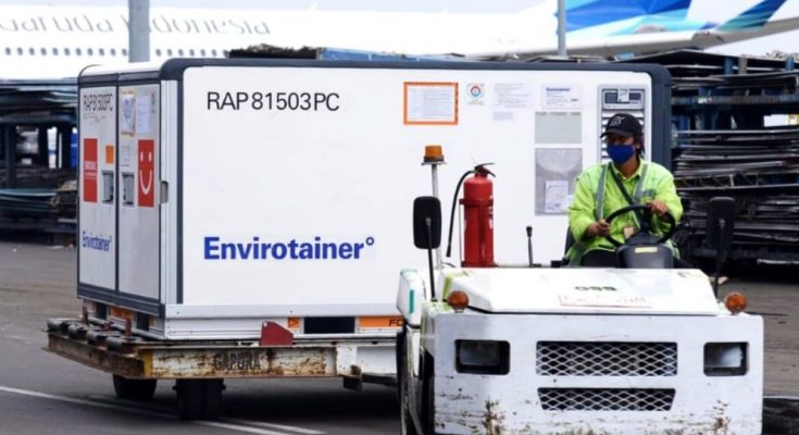 Jakarta – Bahan baku vaksin Covid-19 dari Sinovac kembali tiba di Indonesia pada Rabu, 30 Juni 2021, di Bandara Internasional Soekarno-Hatta, Tangerang. Pada kedatangan vaksin ke-18 ini, pemerintah mendapatkan 14 juta dosis bahan baku vaksin yang nantinya akan terlebih dahulu diolah oleh Bio Farma menjadi siap pakai.