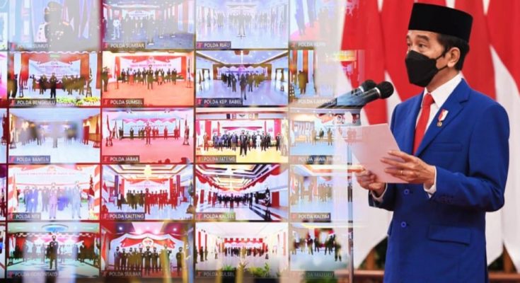Jakarta – Presiden Joko Widodo menyampaikan apresiasinya kepada jajaran Polri yang telah bekerja keras dalam menangani pandemi Covid-19 di Tanah Air. Apresiasi tersebut disampaikan oleh Kepala Negara saat menyampaikan amanat pada Peringatan ke-75 Hari Bhayangkara yang digelar pada Kamis, 1 Juli 2021, di Istana Negara, Jakarta, secara virtual.