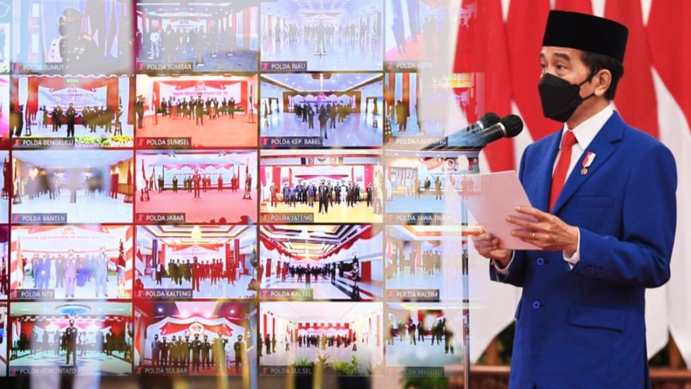 Jakarta – Presiden Joko Widodo menyampaikan apresiasinya kepada jajaran Polri yang telah bekerja keras dalam menangani pandemi Covid-19 di Tanah Air. Apresiasi tersebut disampaikan oleh Kepala Negara saat menyampaikan amanat pada Peringatan ke-75 Hari Bhayangkara yang digelar pada Kamis, 1 Juli 2021, di Istana Negara, Jakarta, secara virtual.