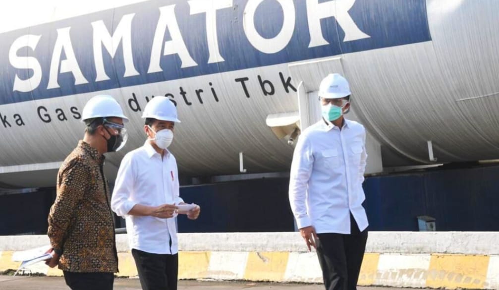 Presiden sangat mengapresiasi apa yang sudah dilakukan oleh PT Aneka Gas Industri, anak usaha dari PT Samator, yang telah bekerja maksimal memenuhi kebutuhan oksigen medis dengan terus menambah kapasitas produksinya sehingga sangat membantu suplai oksigen nasional.