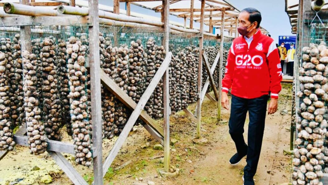 Presiden Joko Widodo melepas komoditas pinang biji untuk diekspor di pabrik CV Indokara, Kabupaten Muaro Jambi, Provinsi Jambi, Kamis, 7 April 2022. Foto: BPMI Setpres