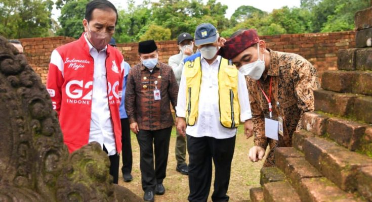 Presiden Joko Widodo meninjau Candi Kedaton di Kawasan Cagar Budaya Nasional (KCBN) Muaro Jambi, Kabupaten Muaro Jambi, Provinsi Jambi, pada Kamis, 7 April 2022. Foto: BPMI Setpres