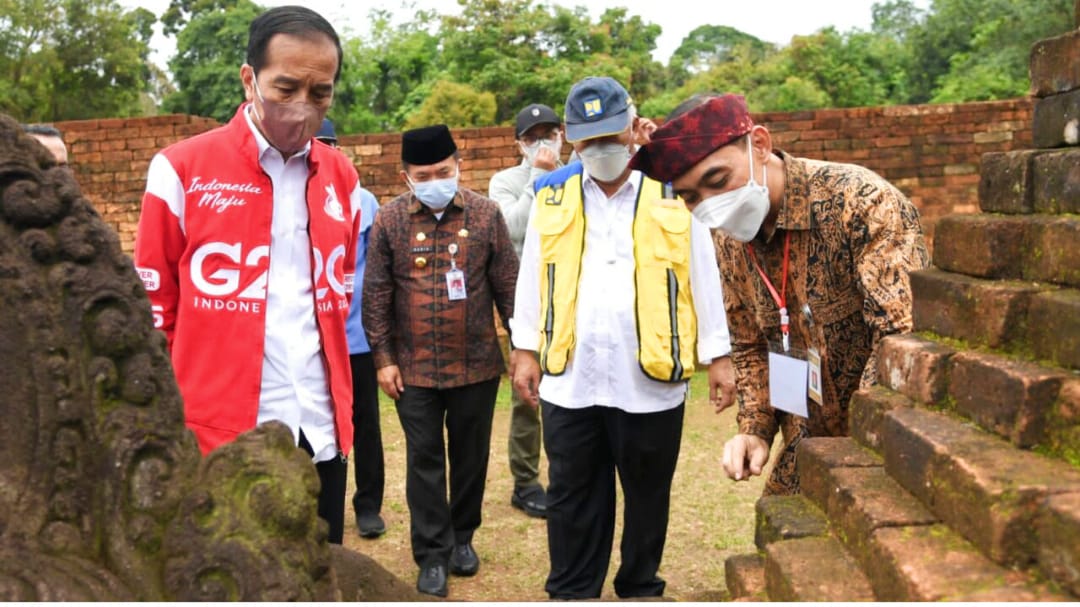 Presiden Joko Widodo meninjau Candi Kedaton di Kawasan Cagar Budaya Nasional (KCBN) Muaro Jambi, Kabupaten Muaro Jambi, Provinsi Jambi, pada Kamis, 7 April 2022. Foto: BPMI Setpres