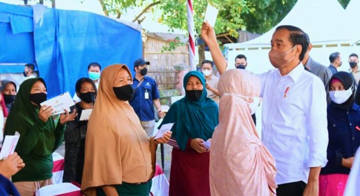 Cirebon – Mengawali kunjungan kerjanya di Provinsi Jawa Barat, Presiden Joko Widodo memberikan sejumlah bantuan sosial (bansos) di Pasar Harjamukti, Kota Cirebon, Rabu, 13 April 2022. Bantuan yang diserahkan antara lain Bantuan Modal Kerja (BMK) dan Bantuan Langsung Tunai (BLT) Minyak Goreng kepada para peserta Program Keluarga Harapan (PKH).