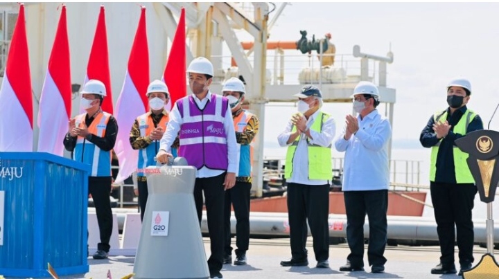 Presiden Joko Widodo meresmikan pembangunan Terminal Kijing Pelabuhan Pontianak yang terletak di Kabupaten Mempawah, Provinsi Kalimantan Barat, pada Selasa, 9 Agustus 2022. Foto: BPMI Setpres