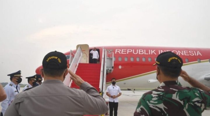 Presiden Joko Widodo bersiap lepas landas dari Pangkalan TNI AU Halim Perdanakusuma, Jakarta, untuk melakukan kunjungan kerja ke Provinsi Kepulauan Bangka Belitung pada Kamis, 20 Oktober 2022. Foto: BPMI Setpres