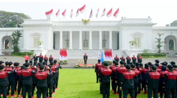 Jakarta – Presiden Joko Widodo secara resmi melepas kontingen Indonesia yang akan berlaga pada SEA Games Ke-32 di Kamboja pada 5-17 Mei 2023. Dalam sambutannya pada acara pelepasan yang digelar di halaman Istana Merdeka, Jakarta, pada Selasa, 2 Mei 2023, Presiden Jokowi menginginkan kontingen Indonesia untuk naik peringkat dari gelaran SEA Games sebelumnya.