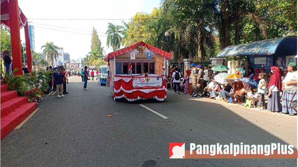 Masyarakat sangat antusias menyaksikan arak-arakan kendaraan hias. Ketika tim pawai DP3ACSKB Provinsi Kepulauan Bangka Belitung melintas, berbagai leaflet dibagikan sebagai salah satu strategi membuat masyarakat cerdas dalam membangun keluarga.(hzr)