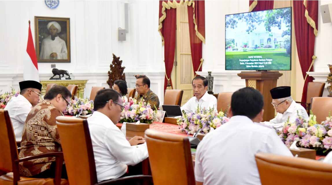 Jakarta – Presiden Joko Widodo menggelar rapat bersama sejumlah Menteri Kabinet Indonesia Maju yang membahas soal perpanjangan penyaluran bantuan pangan Senin, 6 November 2023, di Istana Merdeka Jakarta.