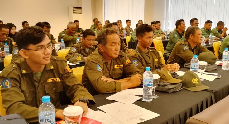 Pangkalpinang – Satuan Perlindungan Masyarakat perlu terus dibekali kemampuan, pengetahuan, dan keterampilan. Demikian disampaikan Kepala Satuan Polisi Pamong Praja Provinsi Kepulauan Bangka Belitung, Yamowa’a Harefa melalui Kepala Bidang Perlindungan Masyarakat dan Peningkatan Personel, Tanaim dalam Kegiatan Pemberdayaan Perlindungan Masyarakat dalam Rangka Ketentraman dan Ketertiban Umum Se-Provinsi Kepulauan Bangka Belitung, di Hotel Sun Pangkalpinang, Rabu (22/11/2023).