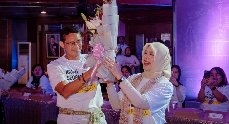 Pada kesempatan ini, Menparekraf Sandiaga didampingi istri, Nur Asia Uno, yang juga memberikan pesan khusus kepada perempuan di Indonesia.