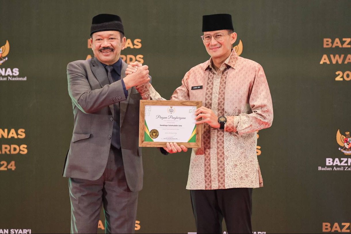 Jakarta – Menparekraf/Kabaparekraf Sandiaga Salahuddin Uno menerima penghargaan Baznas Award 2024 dengan kategori ‘Muzakki Teladan Baznas Republik Indonesia Tahun 2024’.
