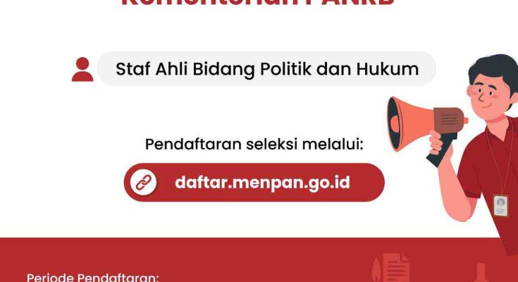 Adapun jabatan yang sedang dilelang dalam kesempatan ini adalah jabatan Staf Ahli Menteri PANRB Bidang Politik dan Hukum. Kesempatan ini terbuka bagi para pegawai negeri sipil (PNS) yang berminat dan memenuhi persyaratan.