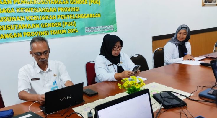 Pangkalpinang – Sedikitnya tiga poin menjadi penekanan Dr. Asyraf Suryadin, M.Pd Kepala DP3ACSKB Provinsi Kepulauan Bangka Belitung saat Kegiatan Pelembagaan Pengarustamaan Gender (PUG), di DP3ACSKB Provinsi Kepulauan Bangka Belitung, Rabu (27/3/2024).