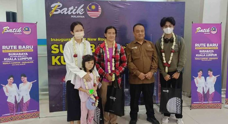 Kemenparekraf/Baparekraf menggelar acara penyambutan wisman asal Malaysia untuk penerbangan perdana Batik Air rute Kuala Lumpur ke Surabaya yang diwakili oleh Ketua Tim Pemasaran Pariwisata untuk pasar Asean Kemenparekraf/Baparekraf, Deni Priadi.