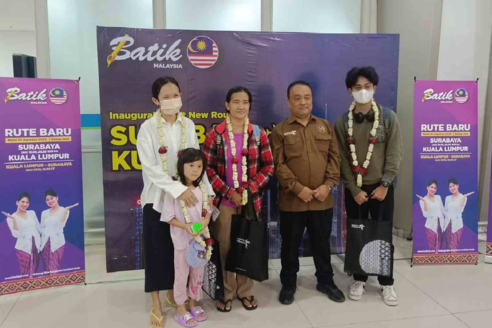 Kemenparekraf yang diwakili oleh Ketua Tim Pemasaran Pariwisata untuk pasar Asean Deni Priadi menyambut wisman Malaysia di Bandara Juanda, Surabaya, Kamis (1/8/2024).
