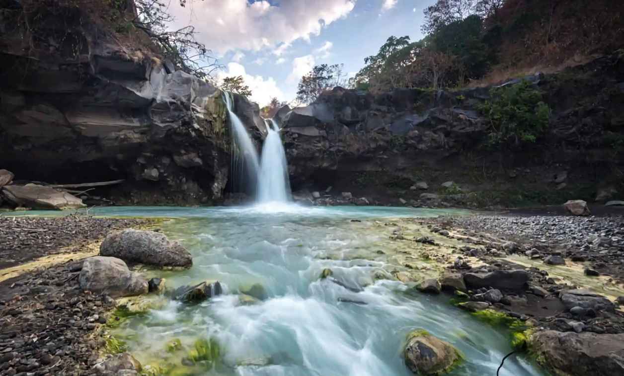 Warna air terjun hijau toska kebiruan yang disebabkan oleh kandungan sulfur menjadi daya tarik utama tempat ini. Nah, selain warna airnya yang unik, pemandangan di kawasan ini juga instagramable sehingga cocok bagi para pengunjung yang menggemari fotografi lanskap.