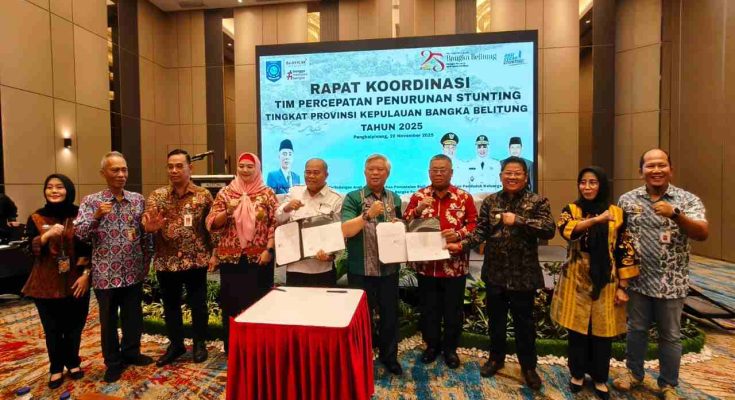 “Kita memiliki tanggung jawab besar untuk memastikan target penurunan prevalensi stunting tersebut,” kata Tarmin saat membuka kegiatan Rapat Koordinasi Tim Percepatan Penurunan Stunting Tingkat Provinsi Kepulauan Bangka Belitung, di Hotel Aston, Kamis (20/11/2025).